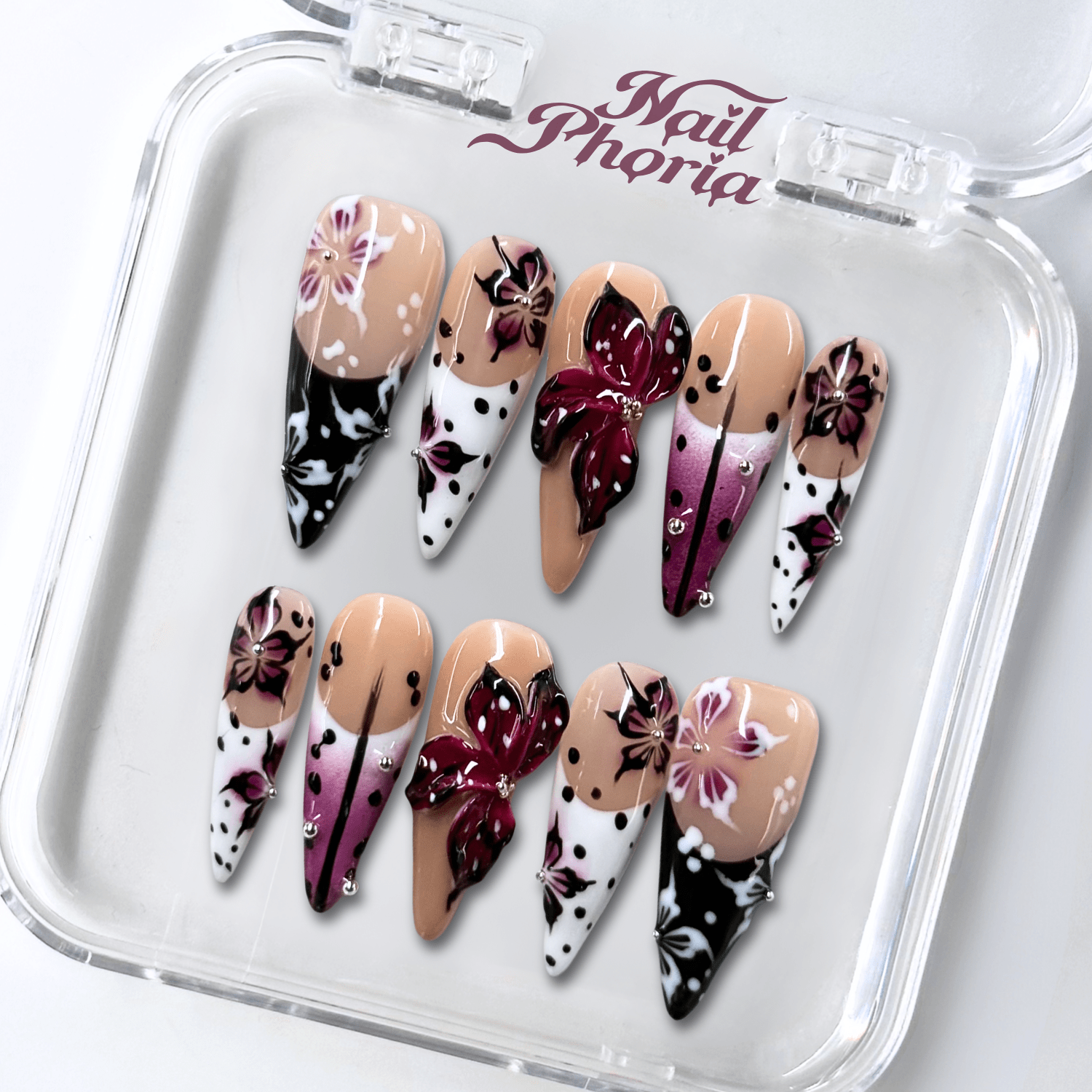 Nailphoria is your ultimate style companion, crafted to match your dynamic life. Each handcrafted, reusable set is designed for those who embrace both boldness and busy schedules. From chic simplicity to striking designs, every pair offers salon quality perfection in minutes, with no drying, no damage, and just instant confidence. Whether you're leading in the boardroom or lighting up the dance floor, Nailphoria keeps up with you. Elevate your look effortlessly, wherever you go.